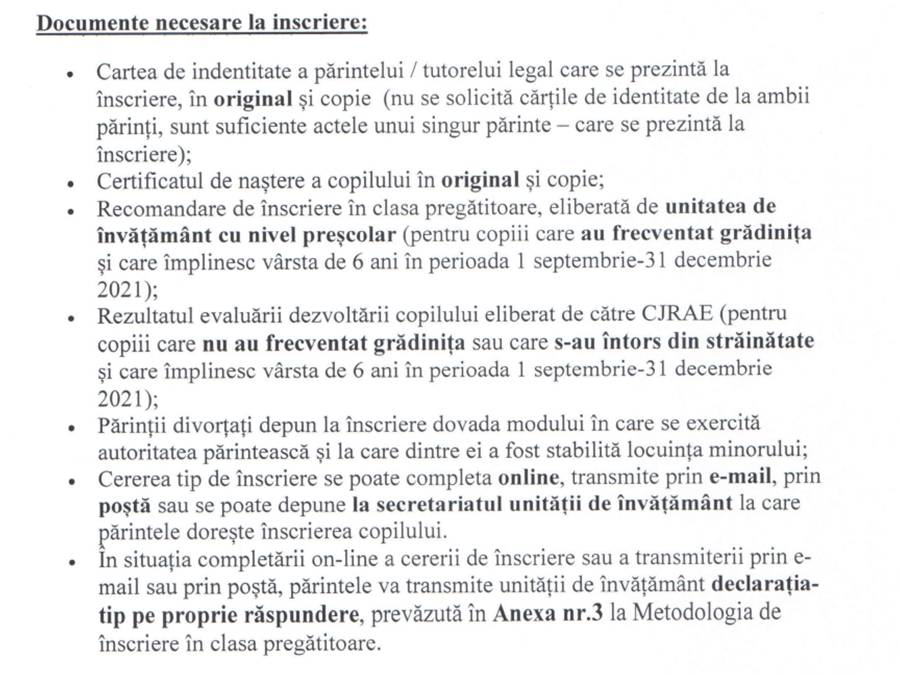 Ministerul Educaţiei Naţionale pune la dispoziţia părinţilor şi cadrelor didactice telefonul verde cu numărul 0 800 816 258 pentru informaţii referitoare la înscrierea, în anul şcolar 2026-2027, a copiilor în clasa pregătitoare.